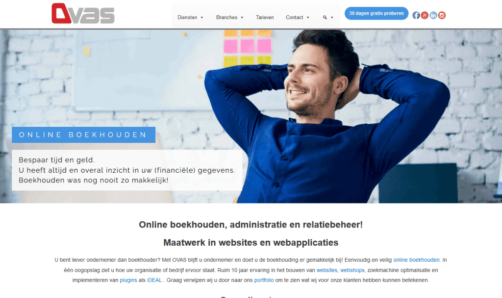Online boekhouden Bespaar tijd en geld.U heeft altijd en overal inzicht in uw (financiële) gegevens.Boekhouden was nog nooit zo makkelijk! Toegepaste diensten ✓ Webdesign op maat✓ Makkelijk zelfbeheerbaar met wordpress✓ Onderhoud✓ Responsive webdesign✓ Hosting